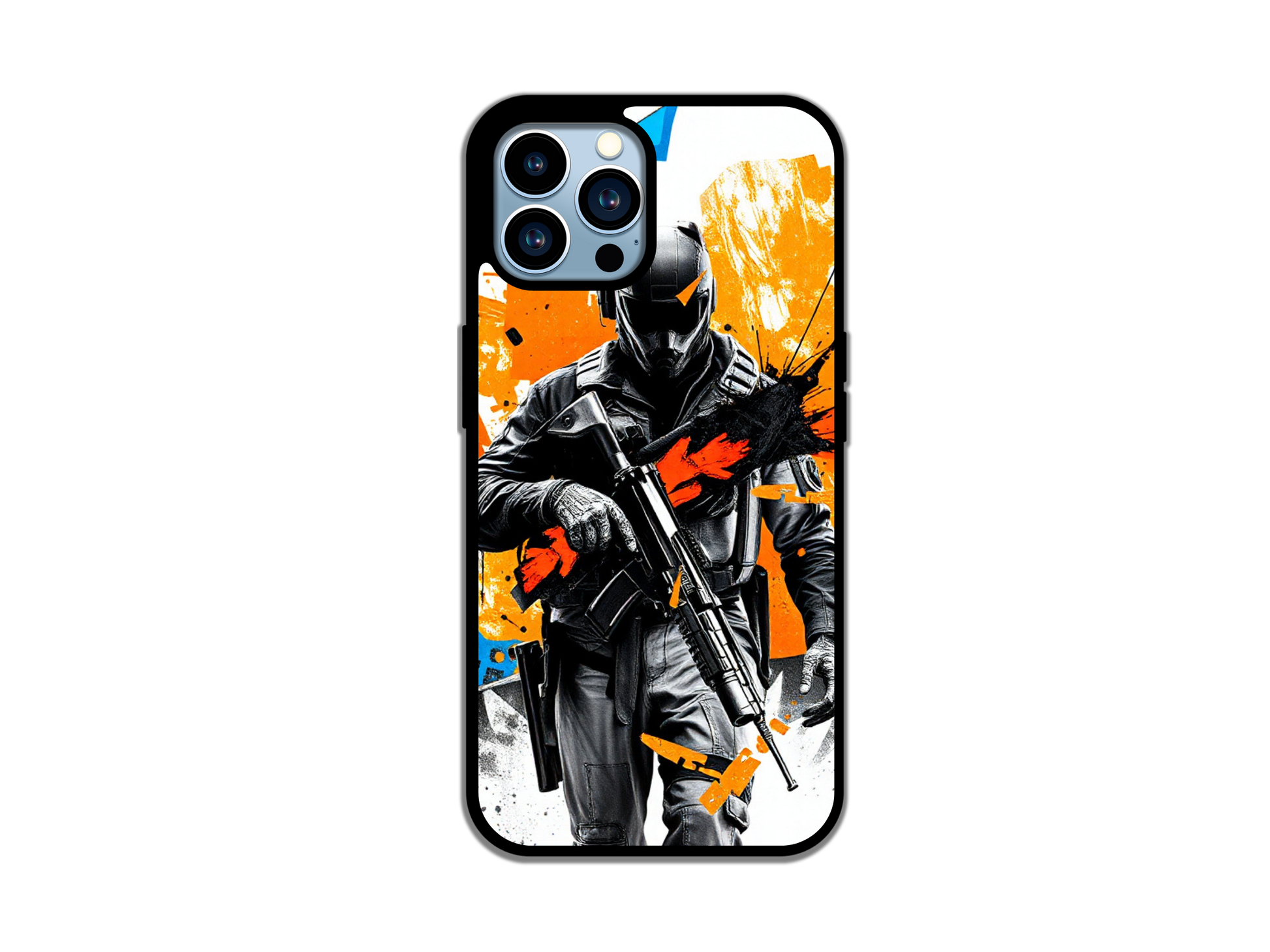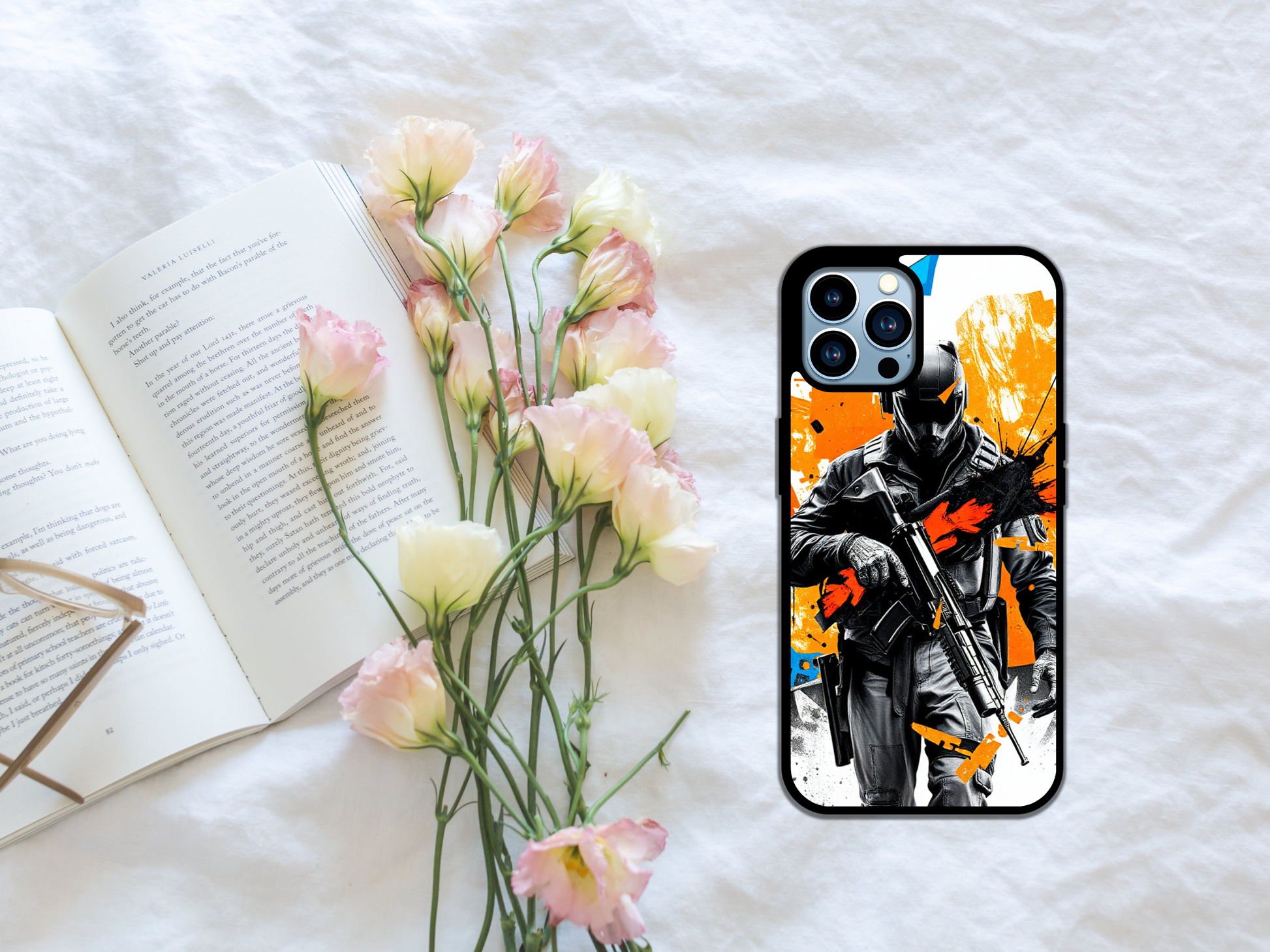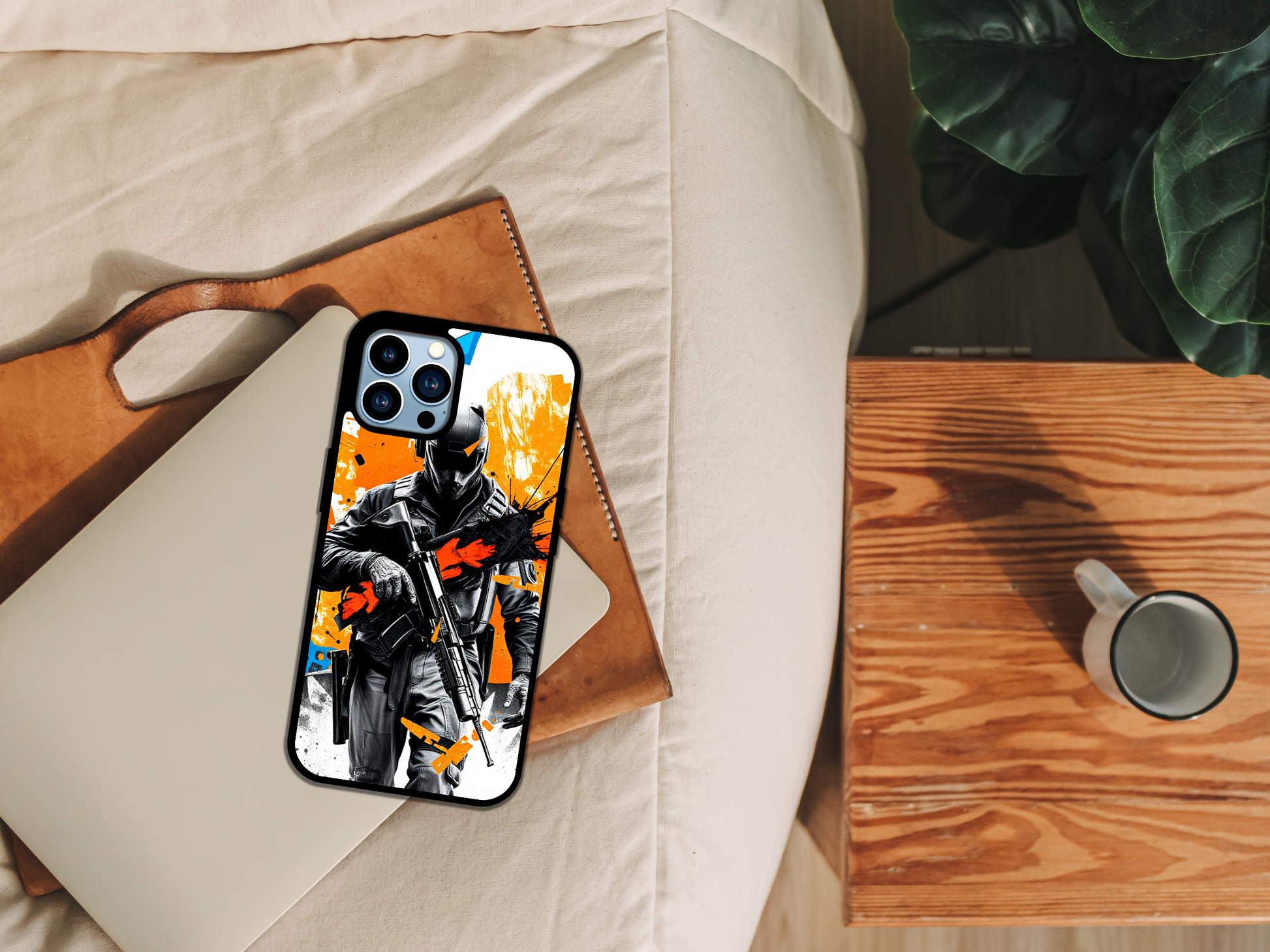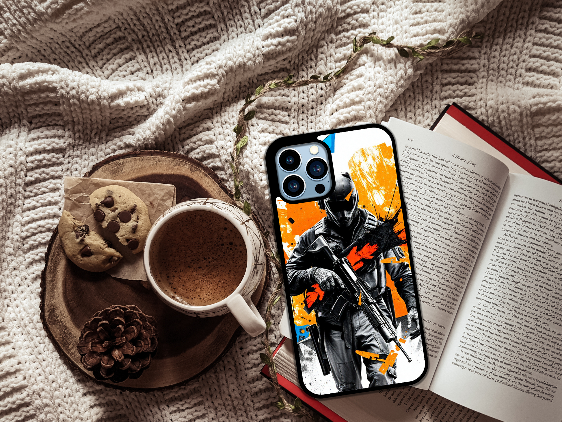 Dominate the battlefield and carry the fight with you everywhere with the Lock and Load phone case. Inspired by the adrenaline-pumping intensity of COD, this design features a fully armed soldier ready for combat, surrounded by explosive splashes of orange, black, and blue. Every detail screams power, precision, and unstoppable force.