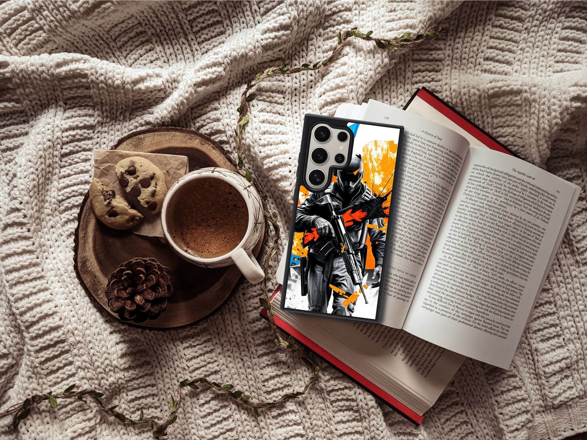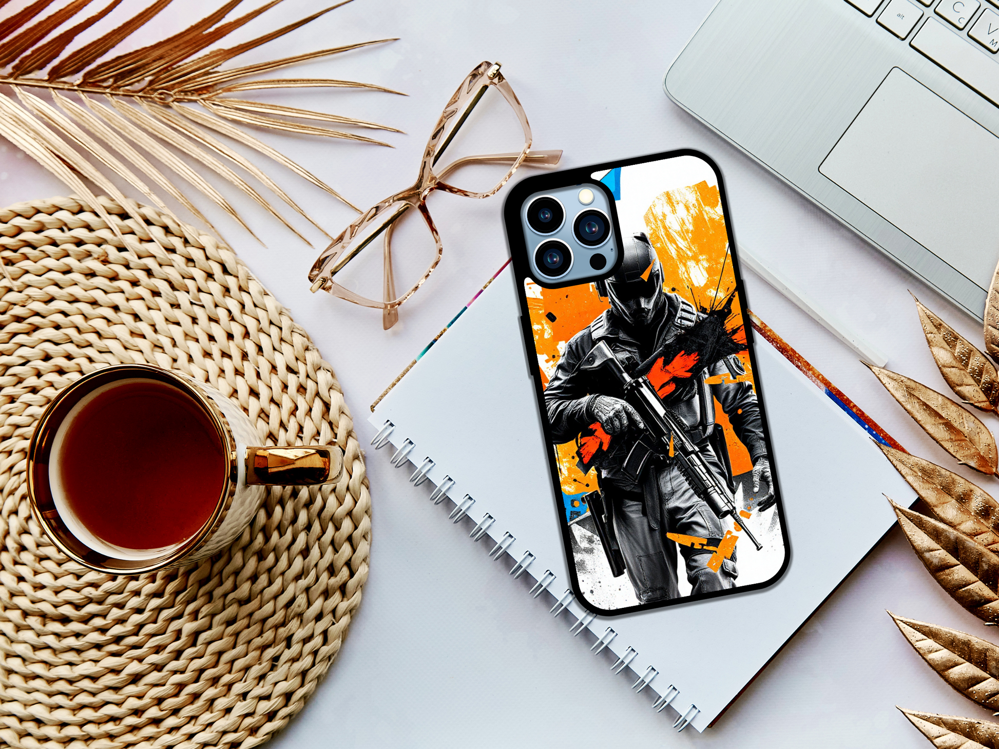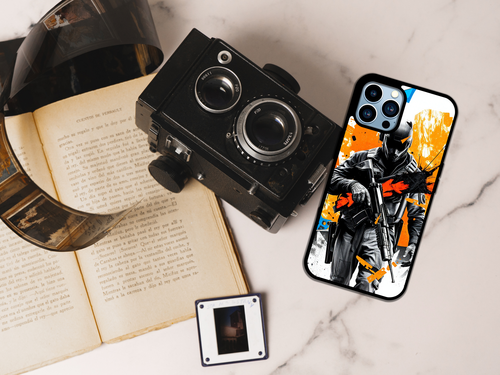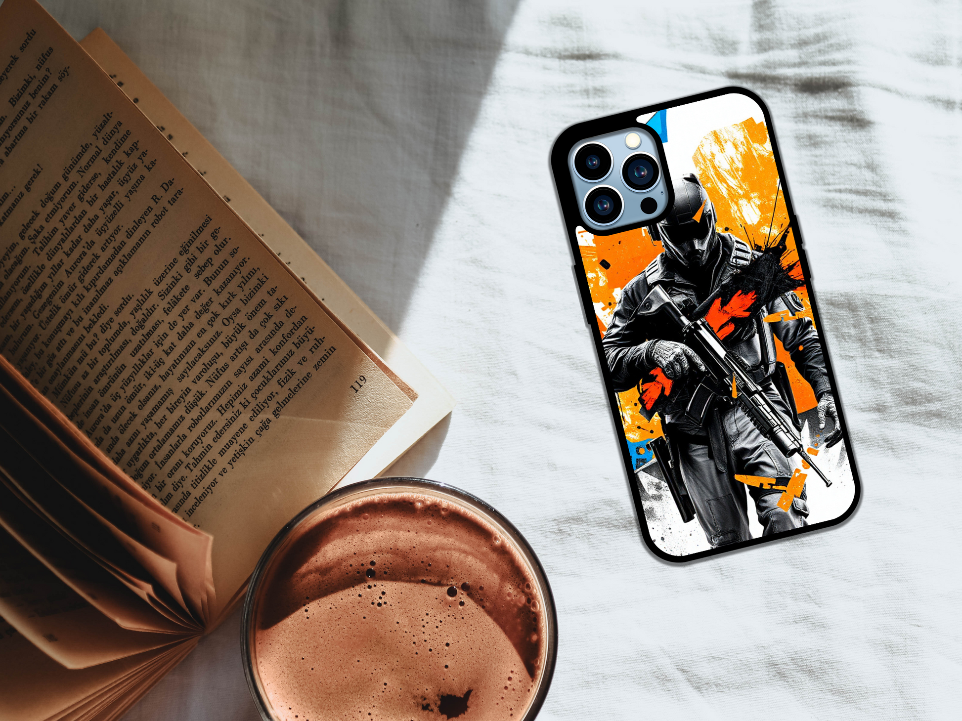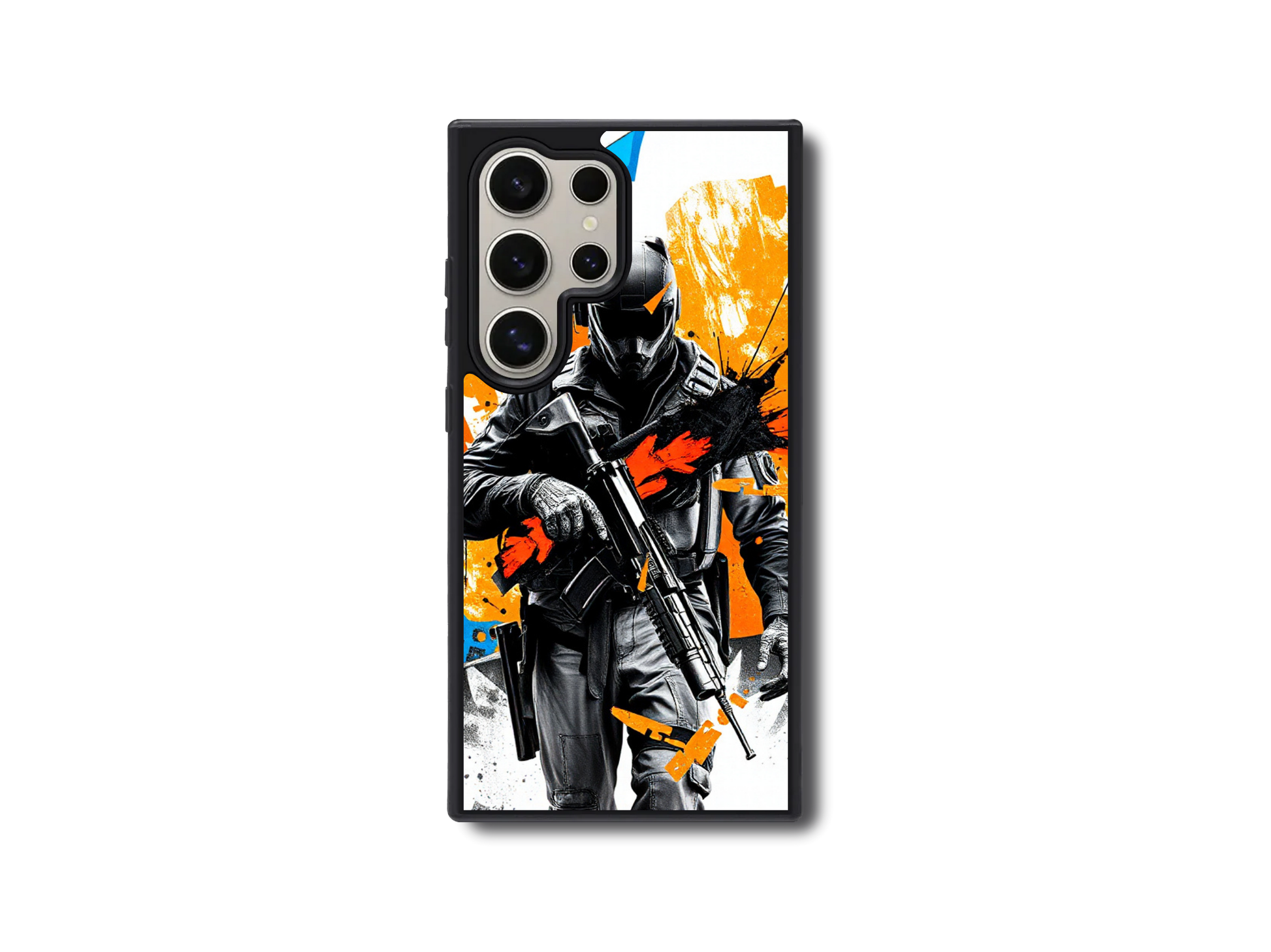 Dominate the battlefield and carry the fight with you everywhere with the Lock and Load phone case. Inspired by the adrenaline-pumping intensity of COD, this design features a fully armed soldier ready for combat, surrounded by explosive splashes of orange, black, and blue. Every detail screams power, precision, and unstoppable force.