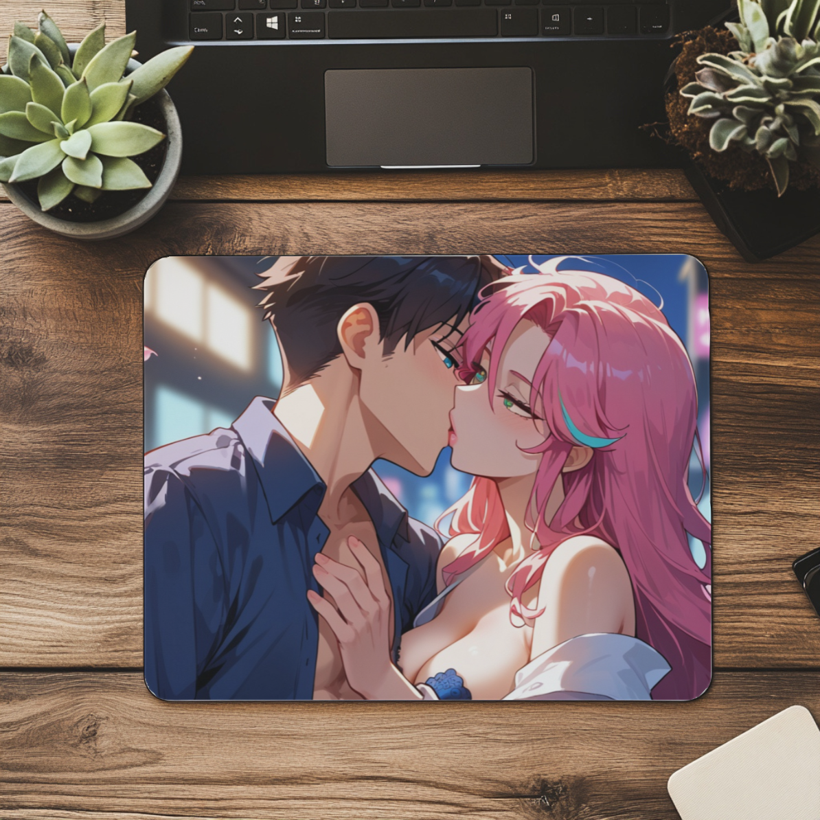 Night Temptation captures that electric moment when chemistry takes over—eyes locked, lips met, hearts racing. With a sultry anime couple caught mid-kiss, this mousepad is dripping with tension, desire, and late-night energy. 🌙💞