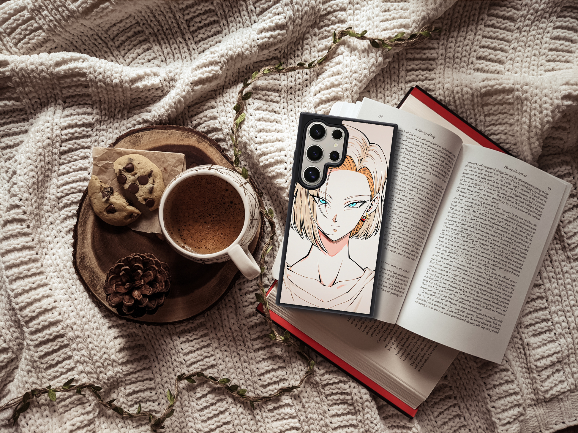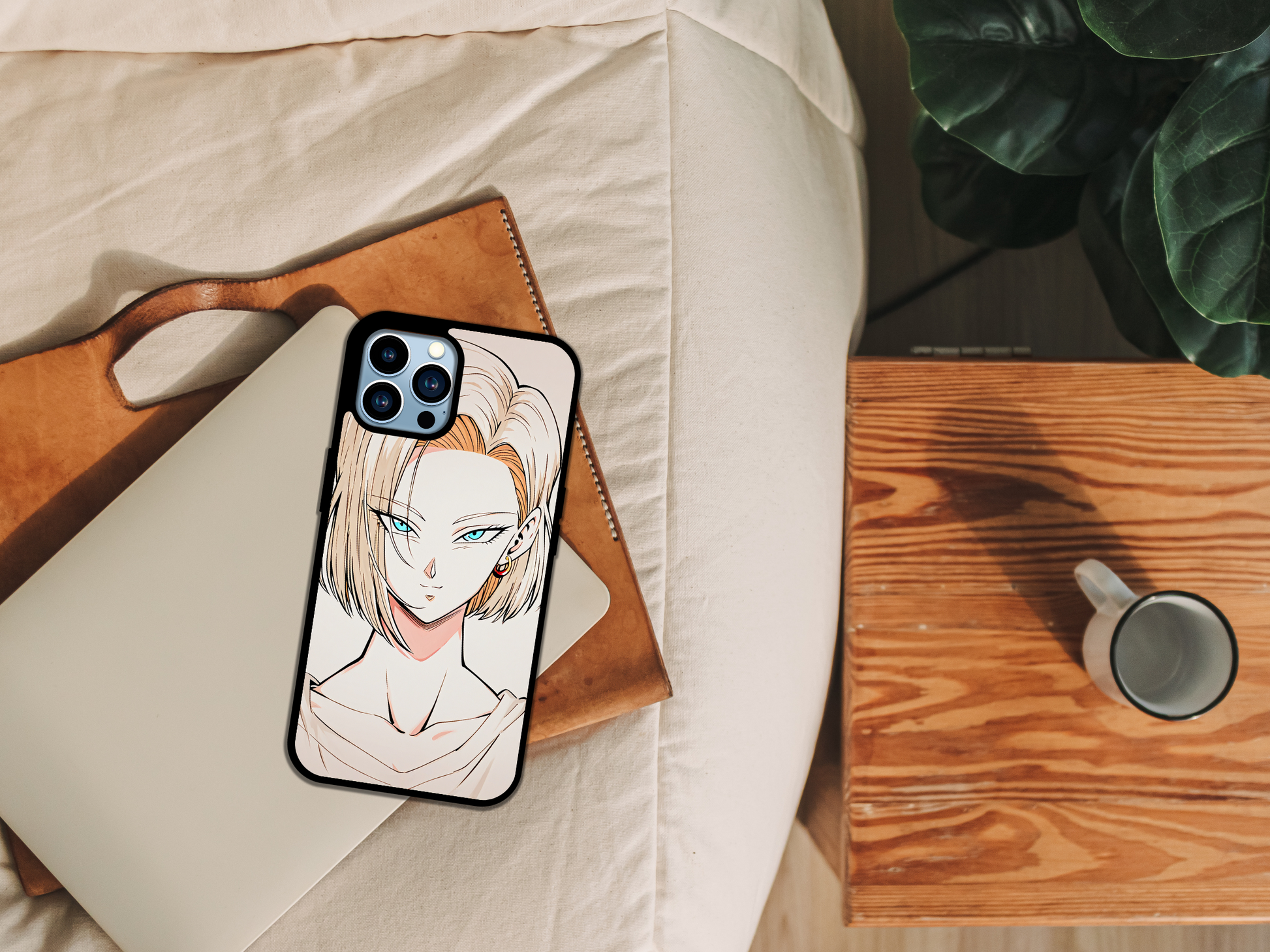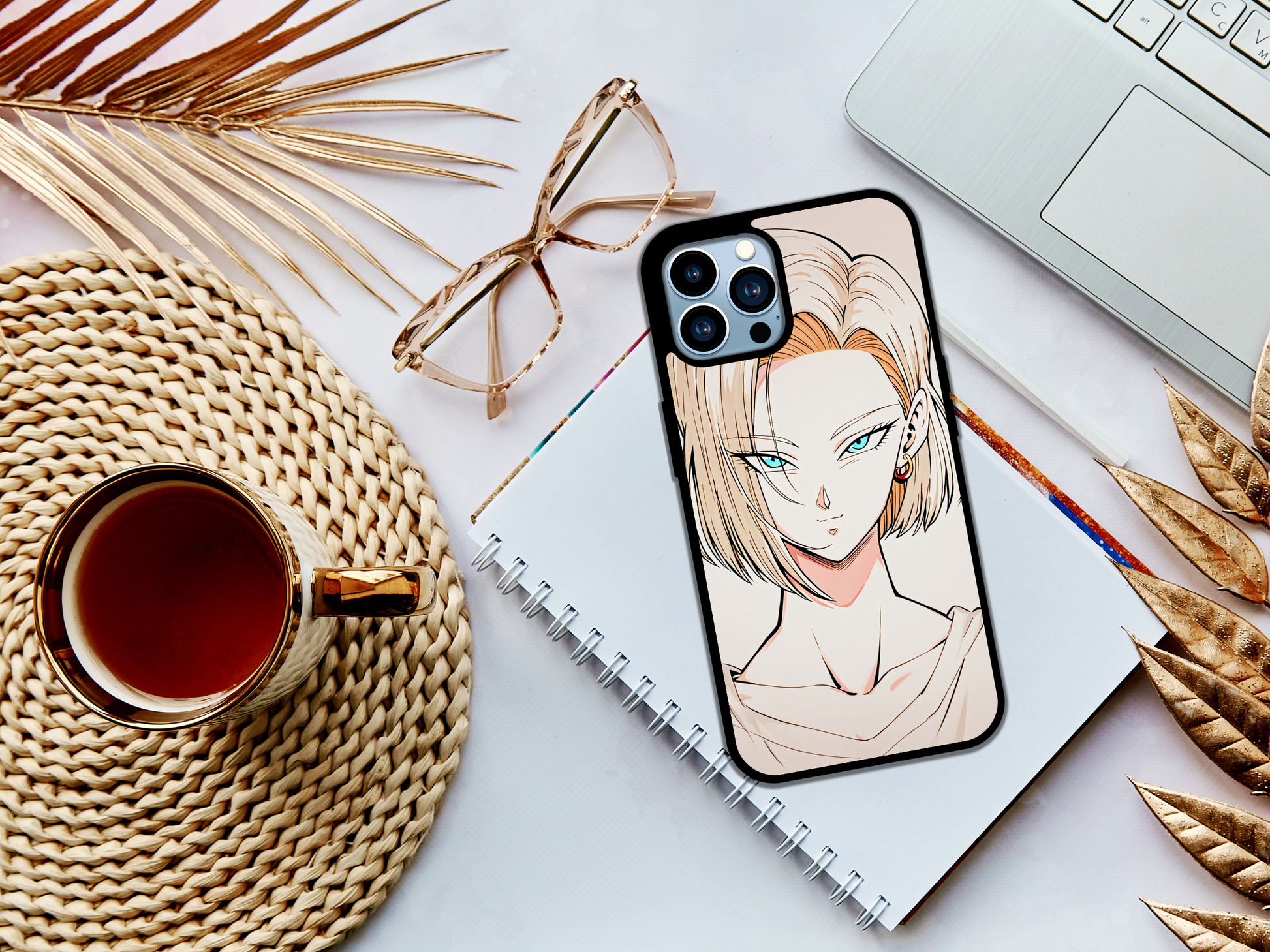One of the most iconic warriors of DBZ, Android 18. Featuring the fierce yet effortlessly cool Android 18 with her signature icy blue eyes and sleek blonde hair, this phone case captures her confidence and unbeatable attitude.