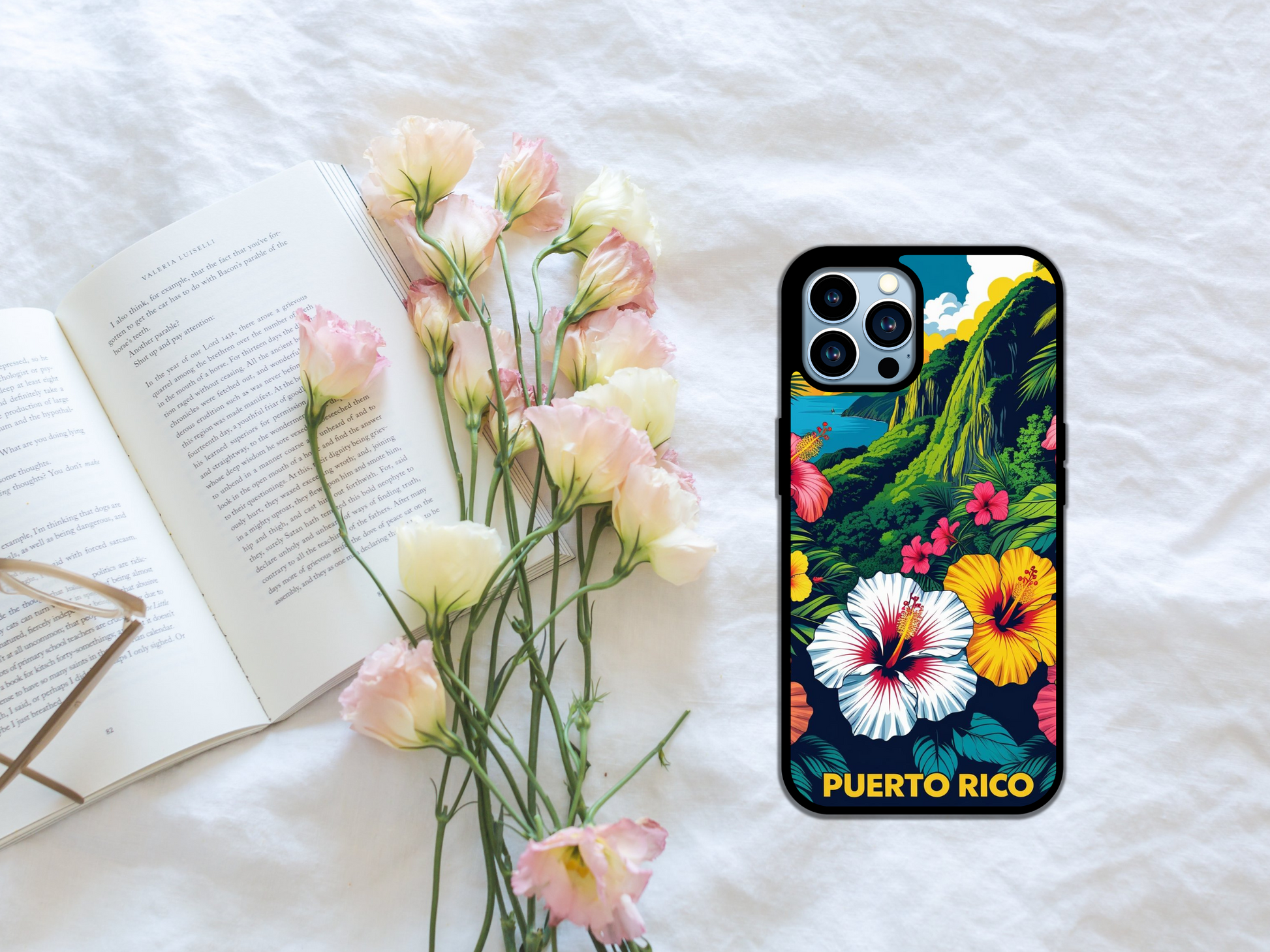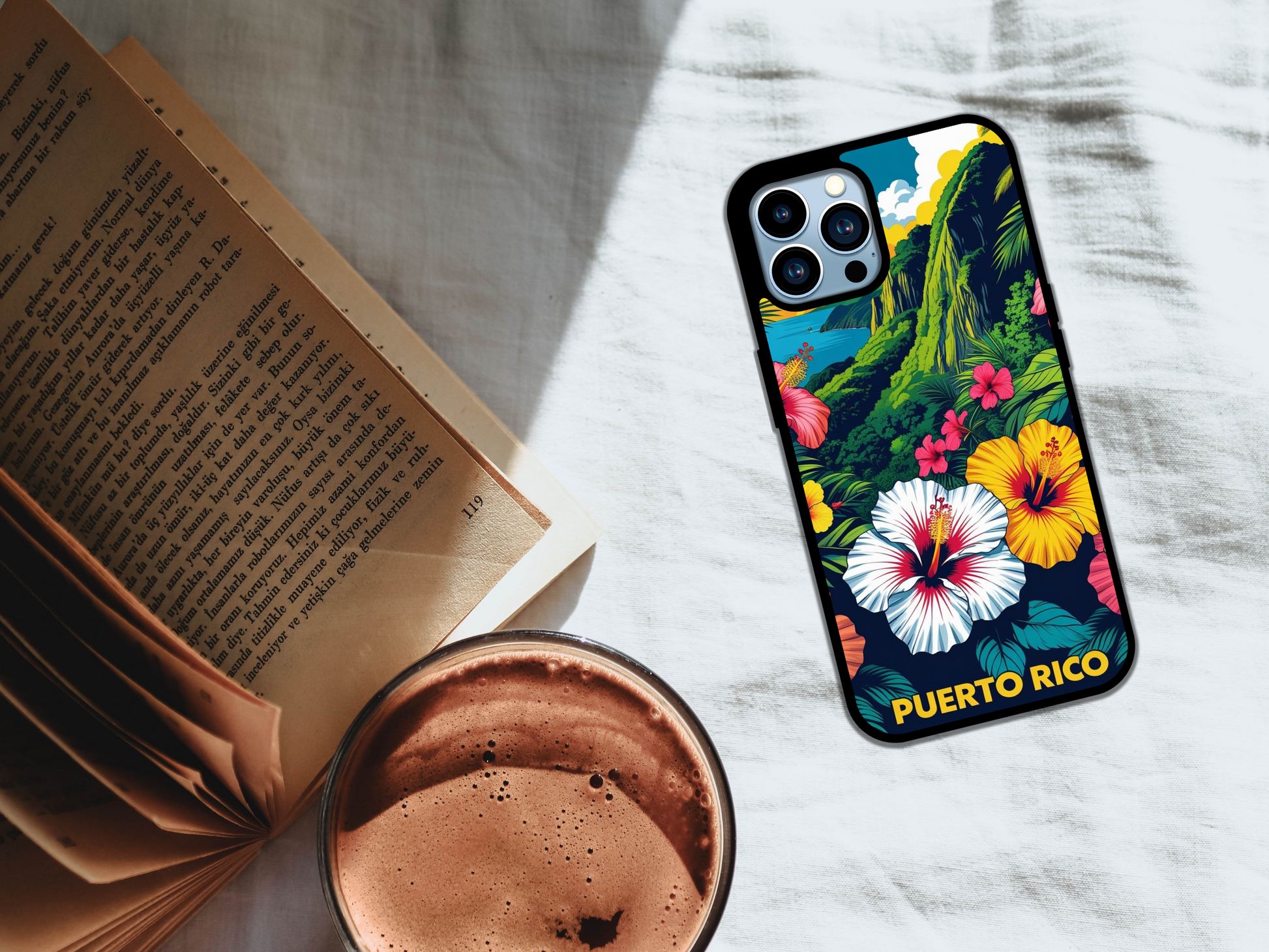 Bring the sunshine and the island vibes with you wherever you go with our Viva Puerto Rico! phone case! Bursting with bright hibiscus flowers, lush green mountains, and a serene coastal view, this design captures the warmth and natural beauty of Puerto Rico in every detail.