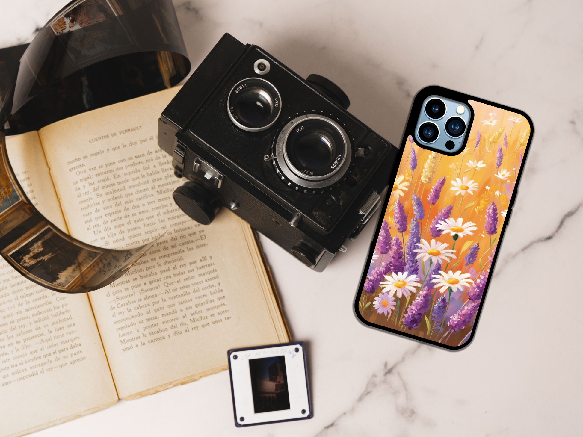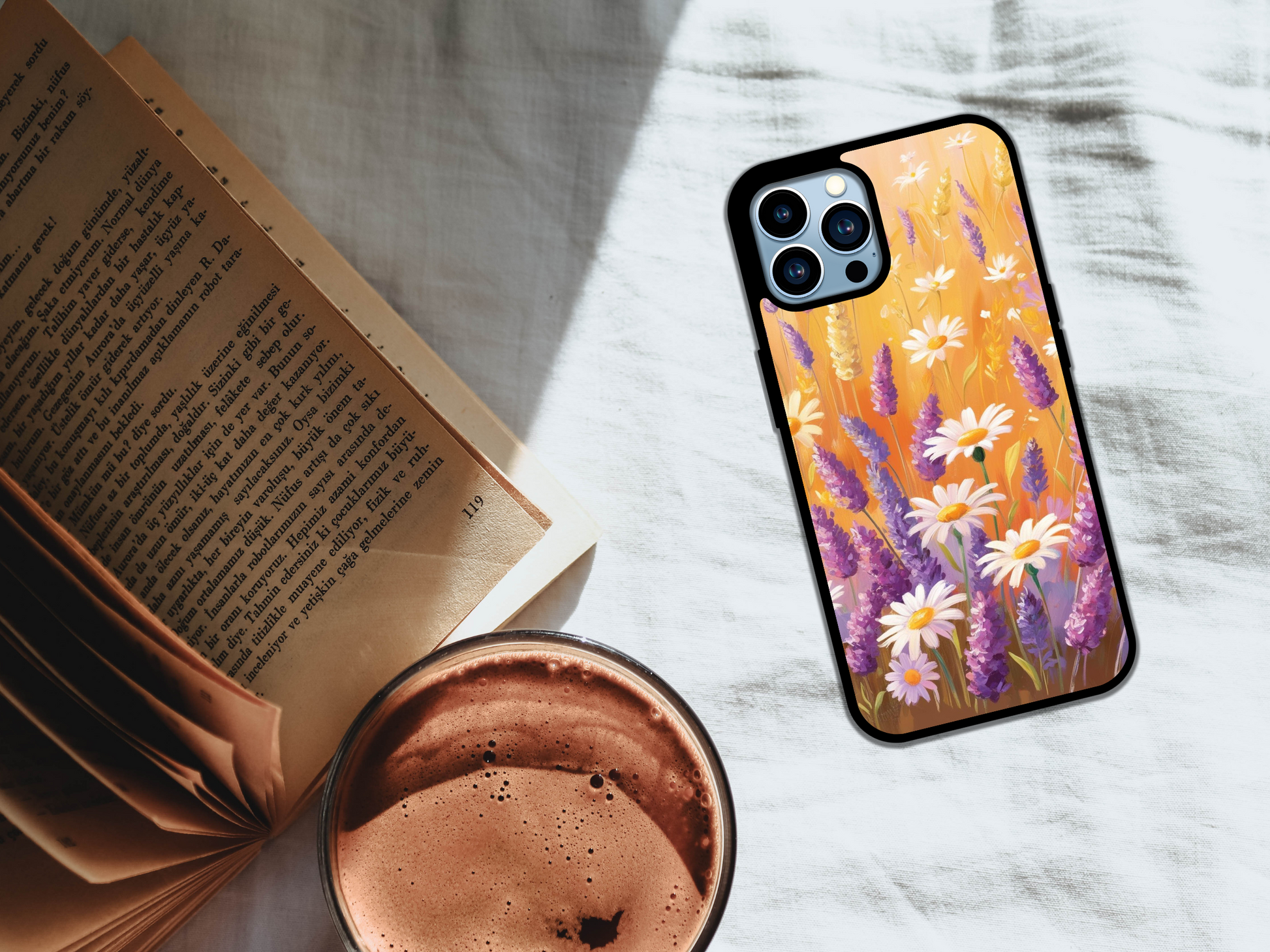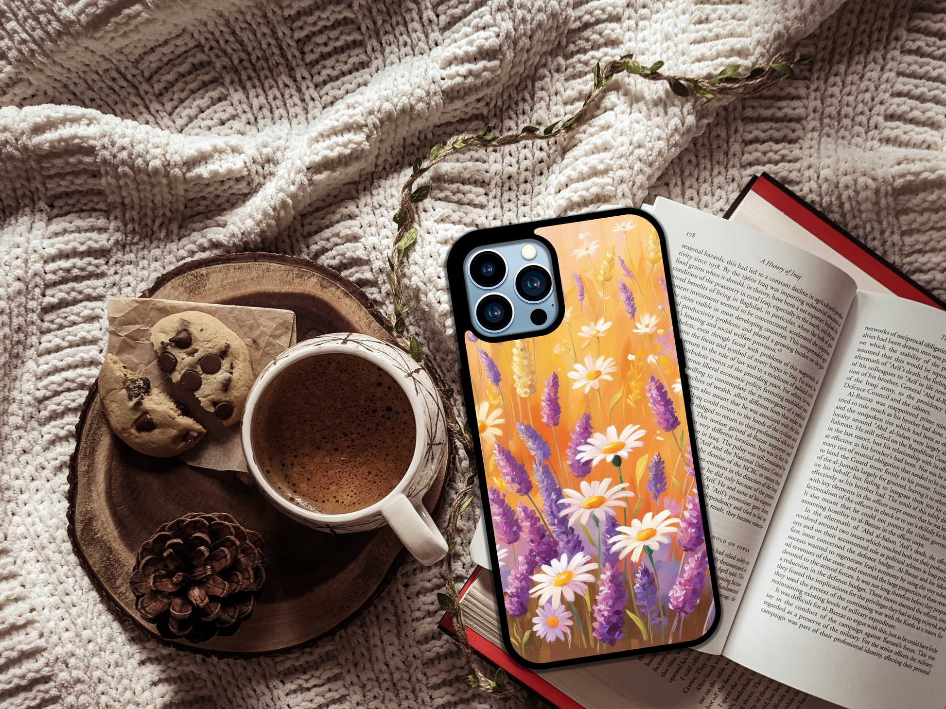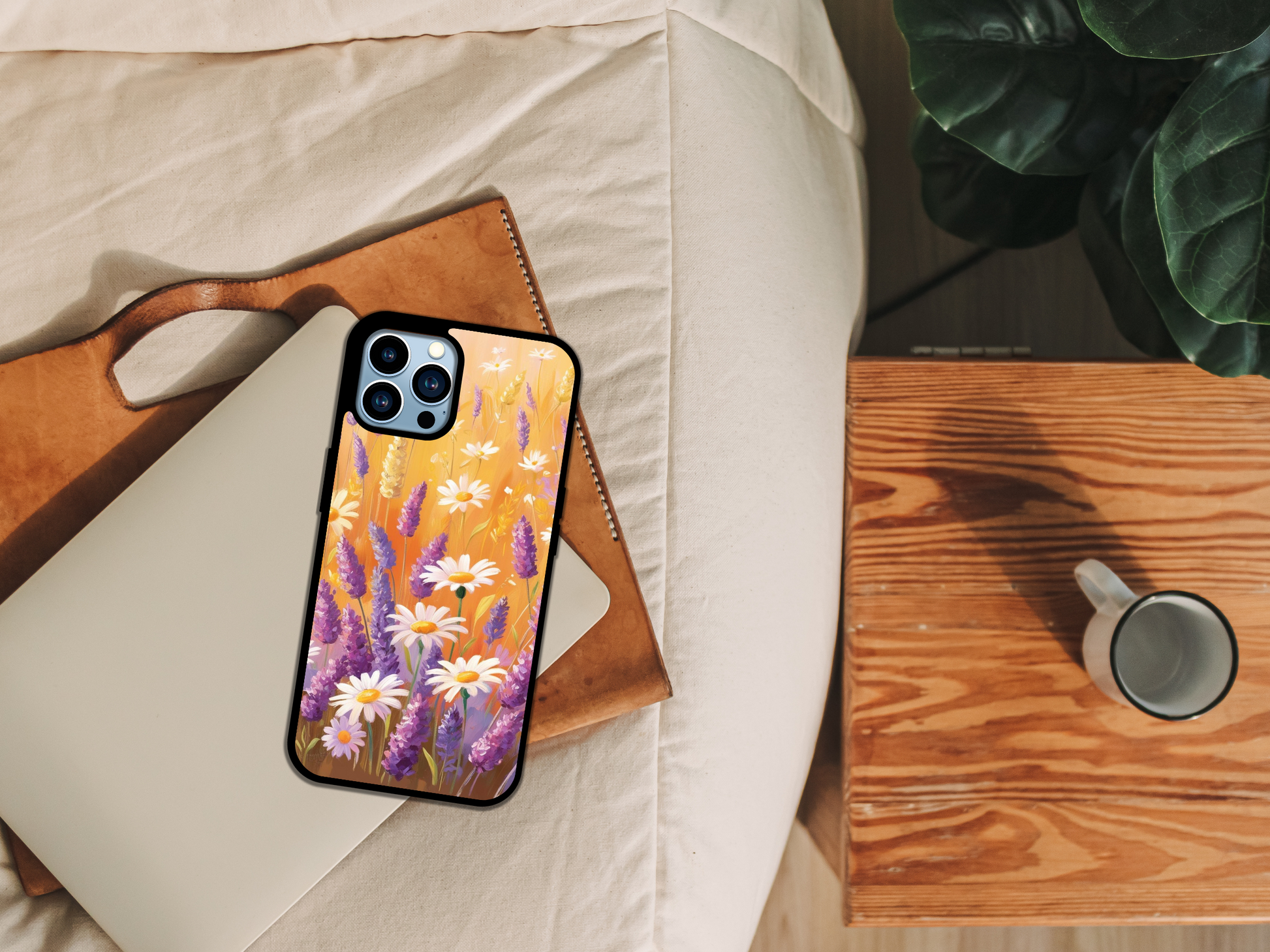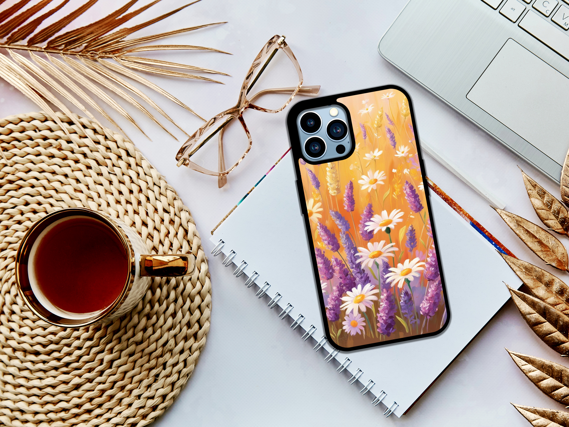 Bask in golden hour vibes with the Golden Bloom phone case — a warm, dreamy field of daisies and lavender kissed by the colors of the setting sun. The rich orange and yellow hues give this design a cozy, radiant energy that feels like summer wrapped around your phone.