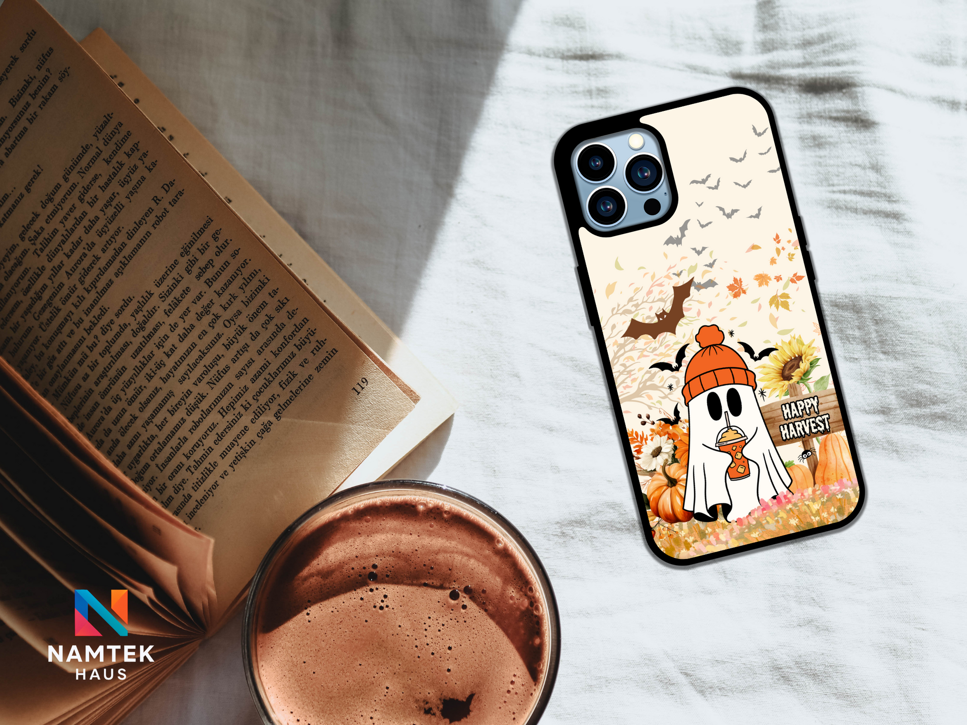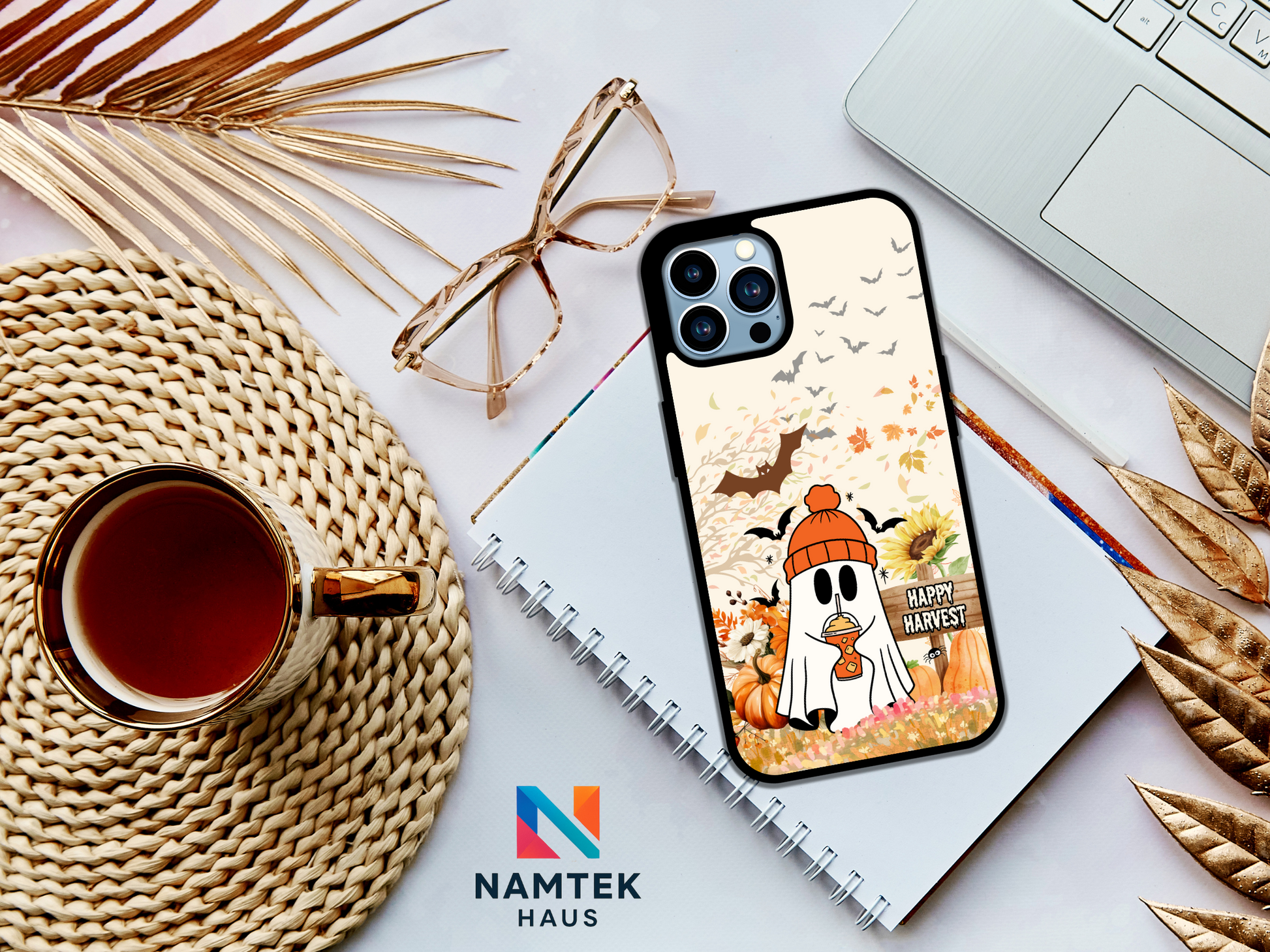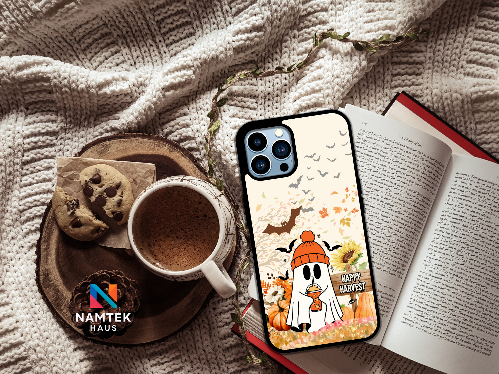 Cozy vibes, spooky charm. Protect your phone in style with our fall-ready ghost design, pumpkins, sunflowers, and swirling leaves for the perfect seasonal look. 🍂🎃