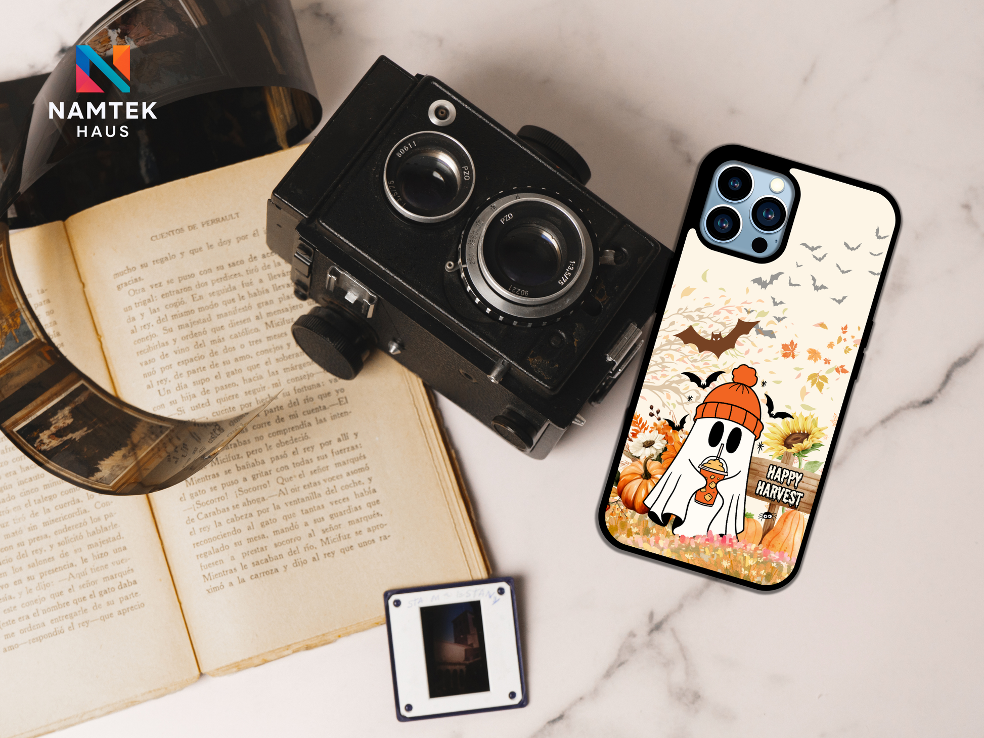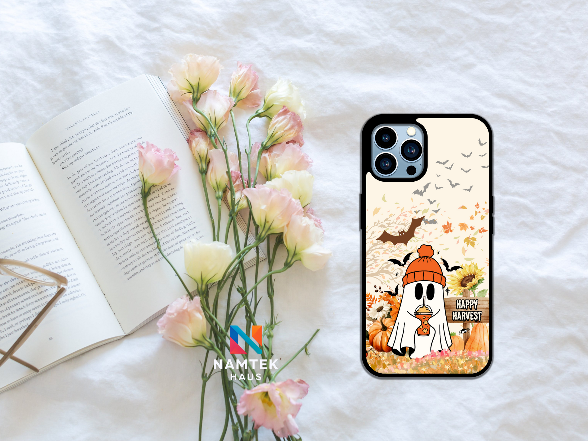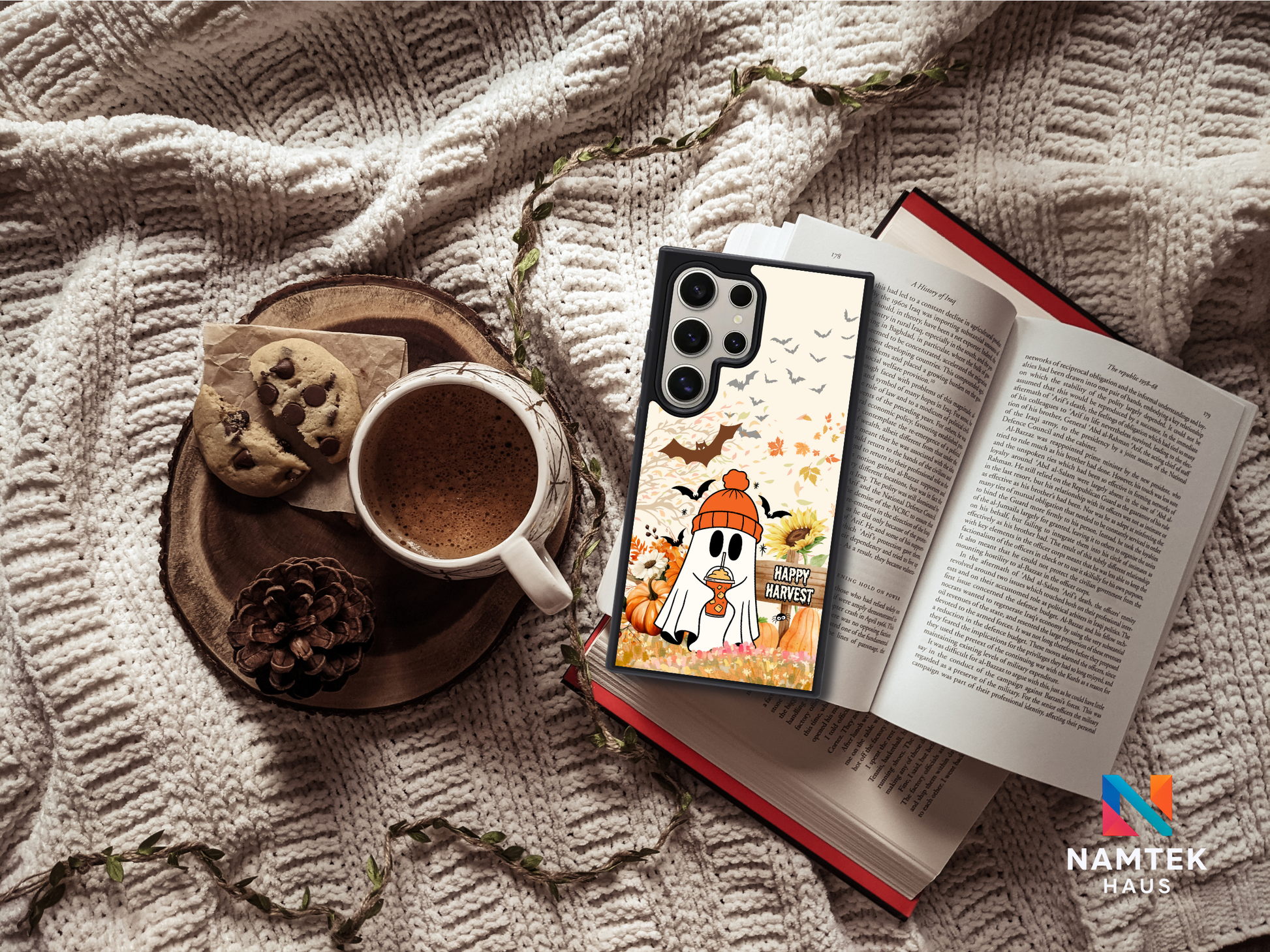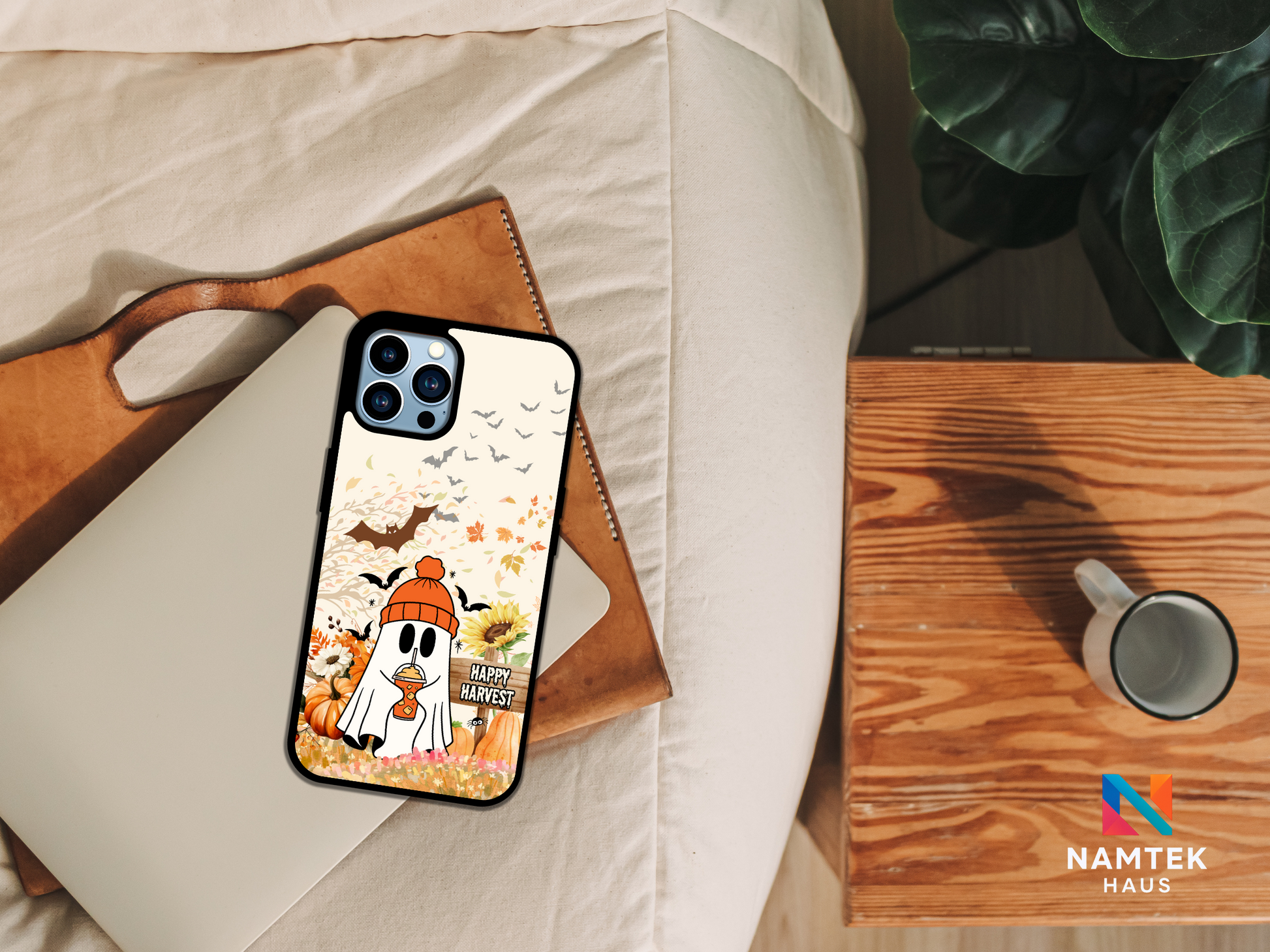 Cozy vibes, spooky charm. Protect your phone in style with our fall-ready ghost design, pumpkins, sunflowers, and swirling leaves for the perfect seasonal look. 🍂🎃