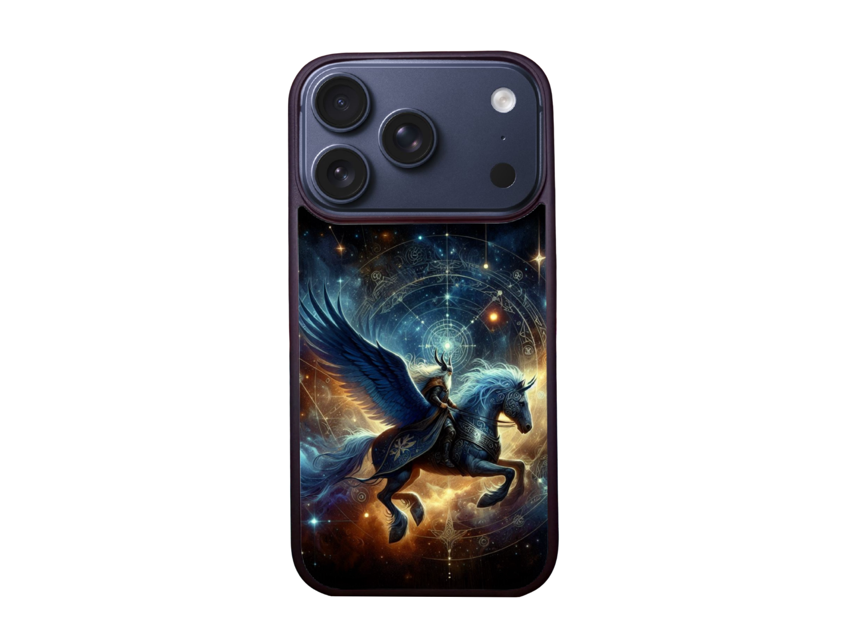 Turn your phone into a statement piece. This premium protective case features a cosmic winged horse & rider rendered in deep blues and golds with crisp, edge-to-edge color. Slim, grippy, and MagSafe-ready—built for everyday drops without bulk.
