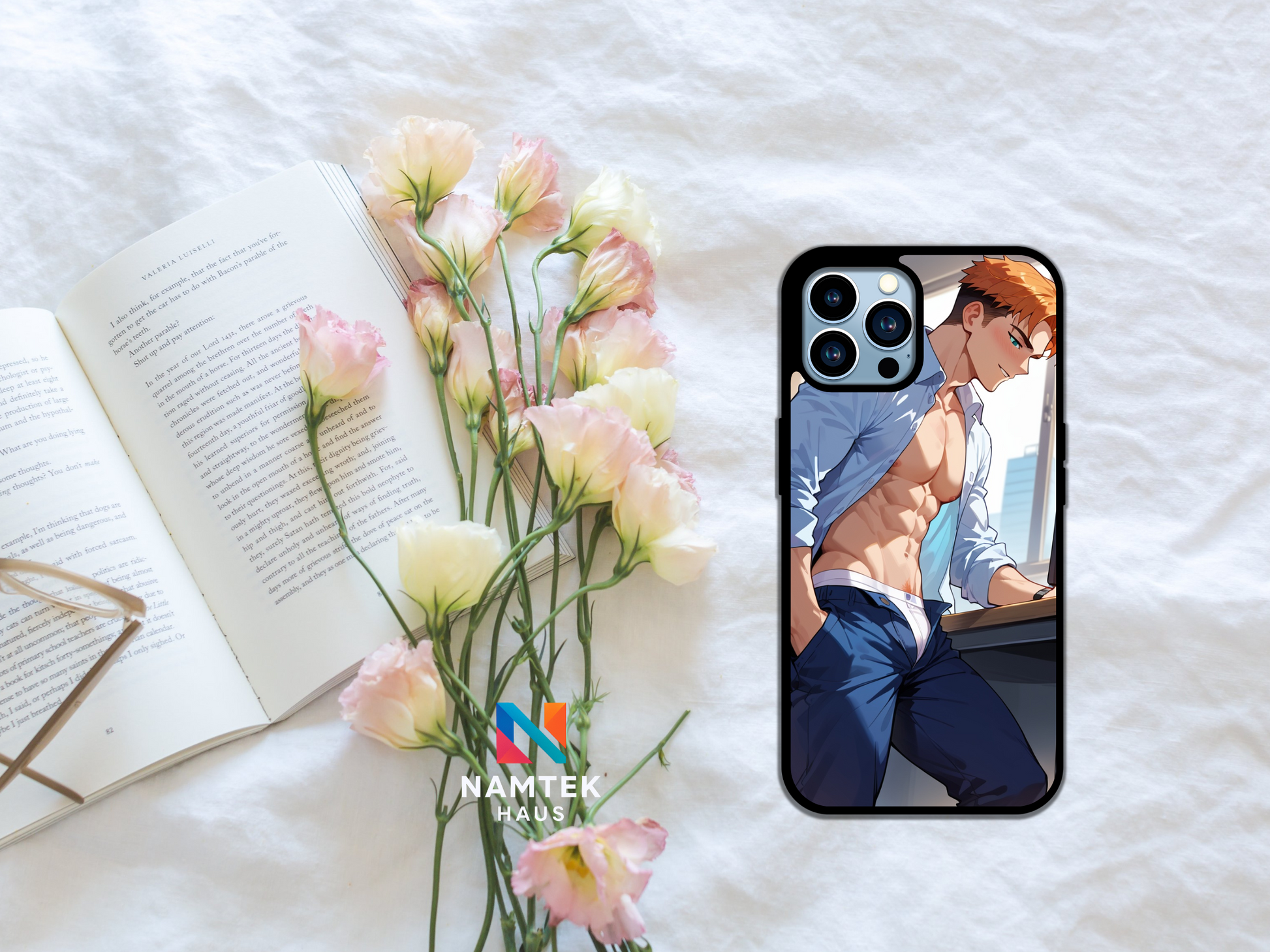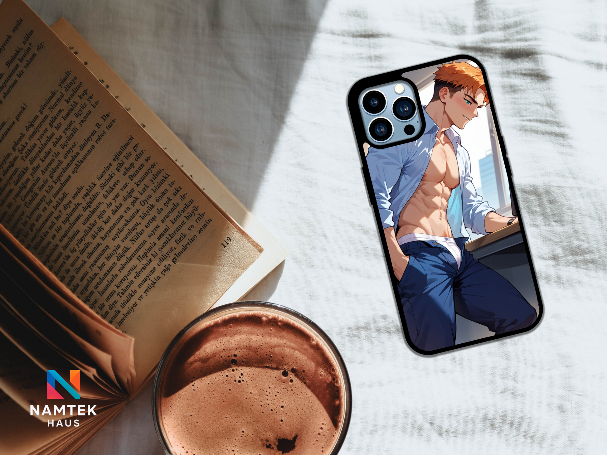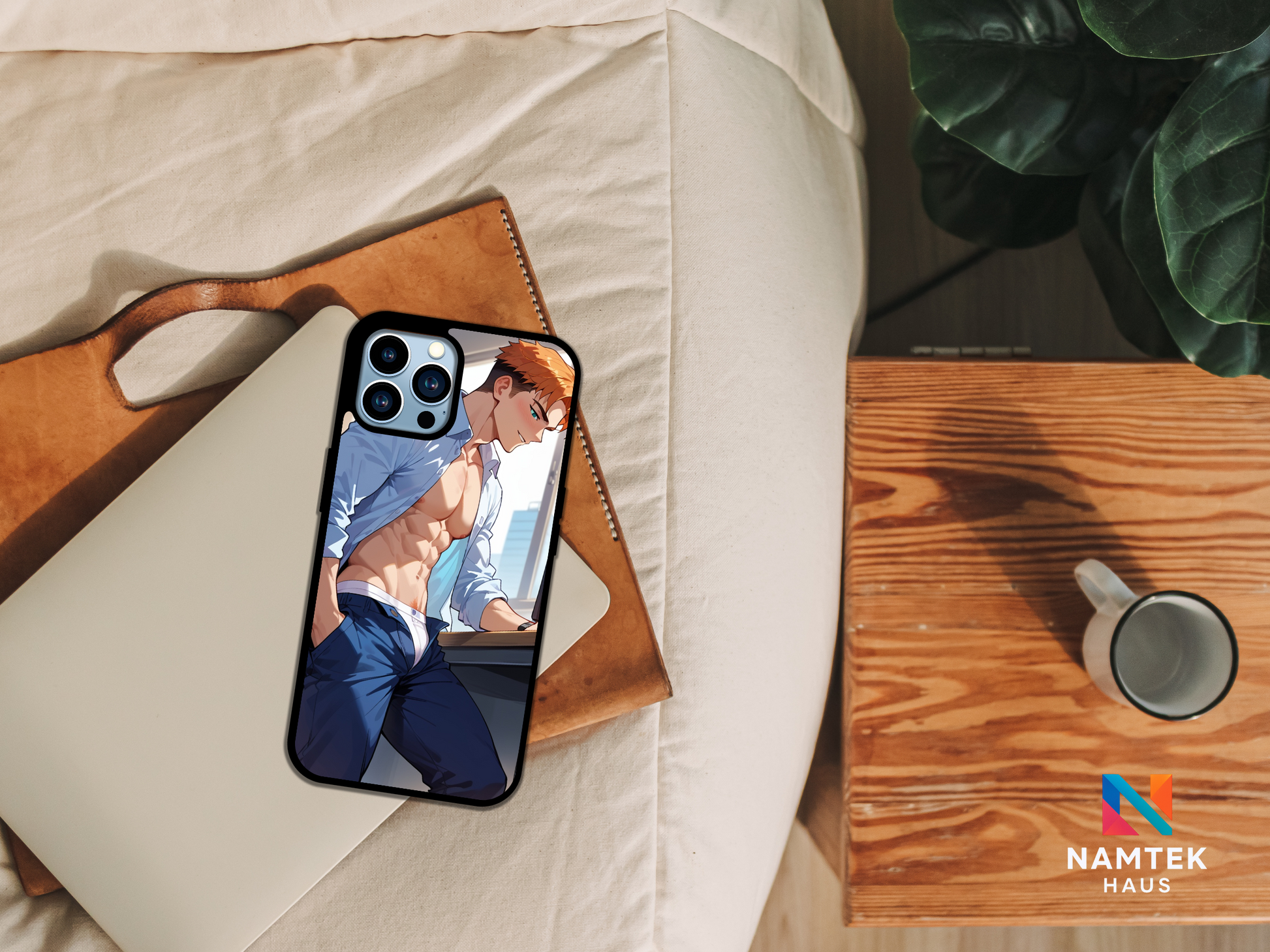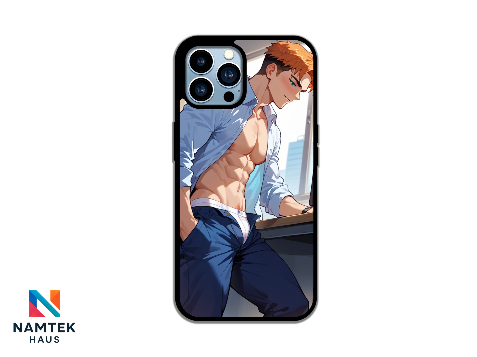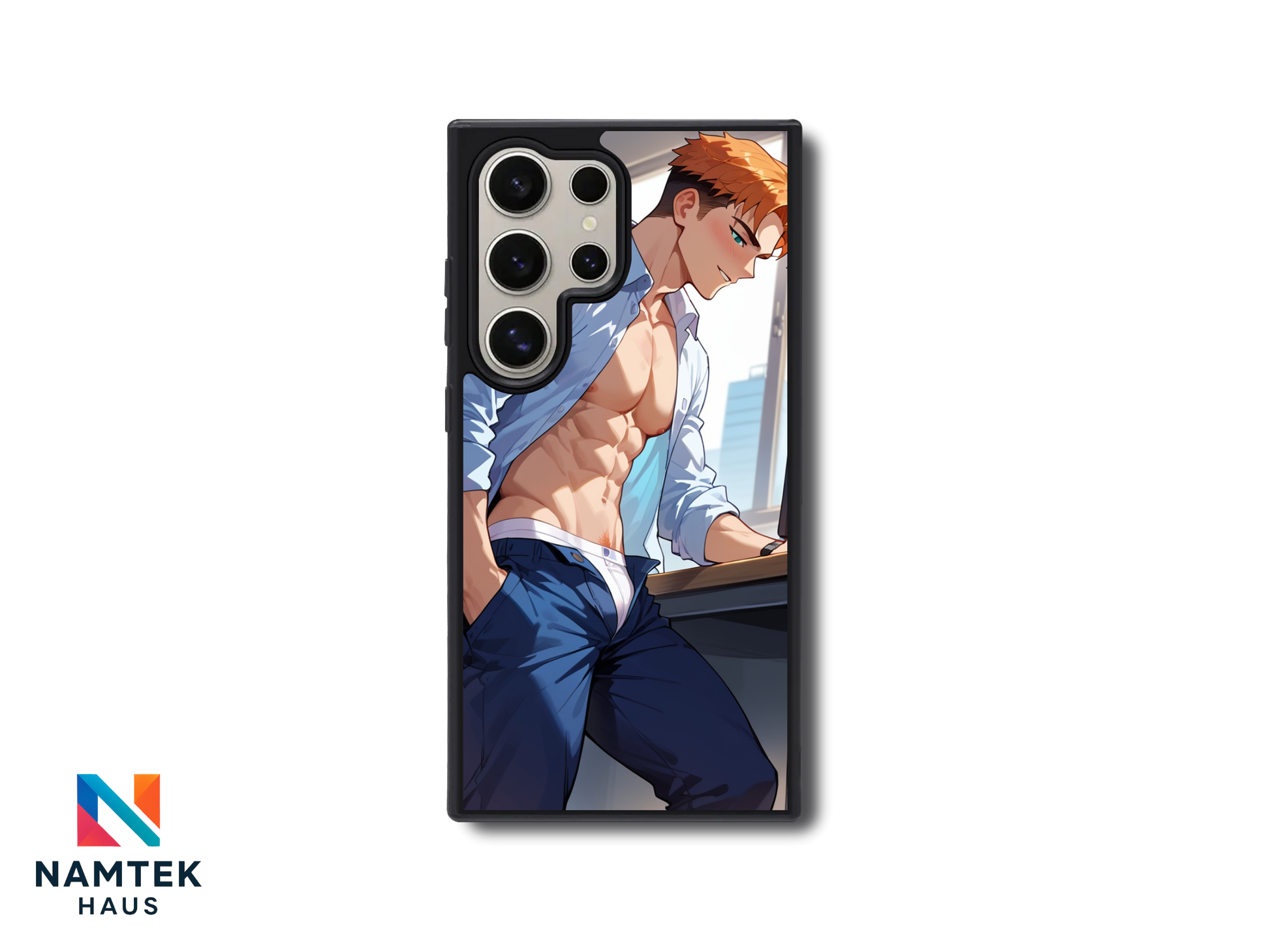 Add a sizzling touch to your phone with this steamy anime-inspired phone case! Featuring a confident, athletic guy with a chiseled six-pack and a half-unbuttoned dress shirt, this design exudes charm and allure. His playful smirk and intense gaze spark a sense of irresistible charisma, while the office background teases at a forbidden romance. Perfect for anime lovers who appreciate a bold and sexy vibe. 🔥✨