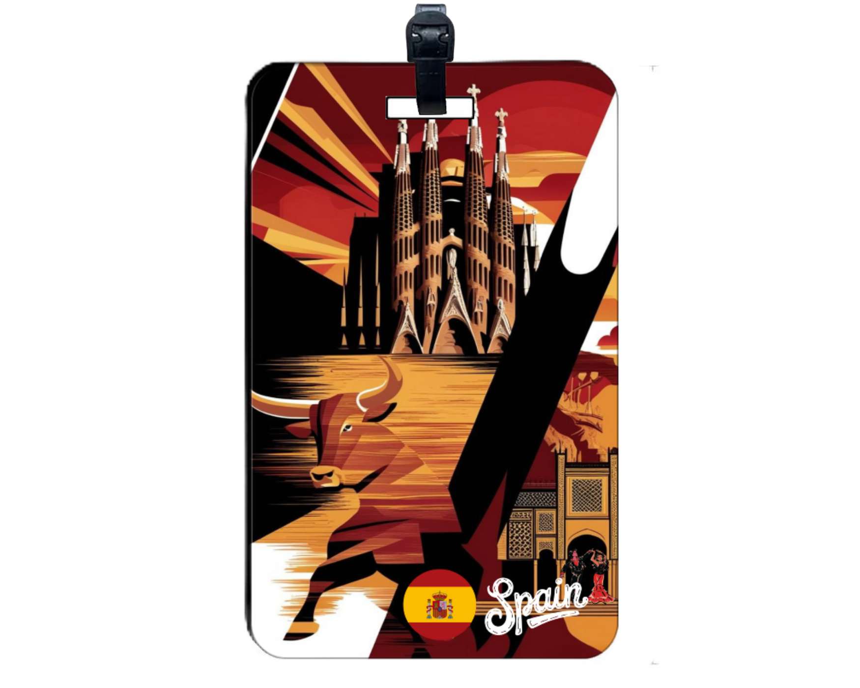 Capture the fire of Spain with our Spain Spirit Travel Tag, where passion, architecture, and heritage collide in one striking design. From the majestic Sagrada Familia to the iconic bull symbol of strength and pride, this tag reflects the heartbeat of Spanish culture and the thrill of every journey you’ll take.
